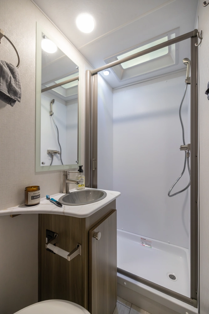 • Dual A/C - 15,000 BTU Ducted Front with Heat Pump & 11,000 BTU Non-Ducted Rear (N/A 22XG, 23FS, 27QB)
