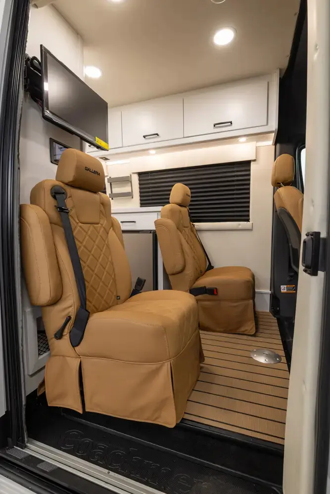 Coachmen RV and Mercedes have combined their decades worth of experience to introduce Galleria, a Class B Motorhome that offers the utmost in quality, luxury and value. Built on the award winning 3500 Mercedes Sprinter extended platform with one of the cleanest running turbo-diesel "Blue TEC" engines on the market which delivers an impressive 325 ft lb of torque while still providing excellent fuel economy. Galleria uses high end components like the Truma Combi furnace/water heater system, Onan generator and maple cabinetry that is handcrafted by a local Amish cabinet maker with cabinet doors, soft close doors/drawers and custom trim.