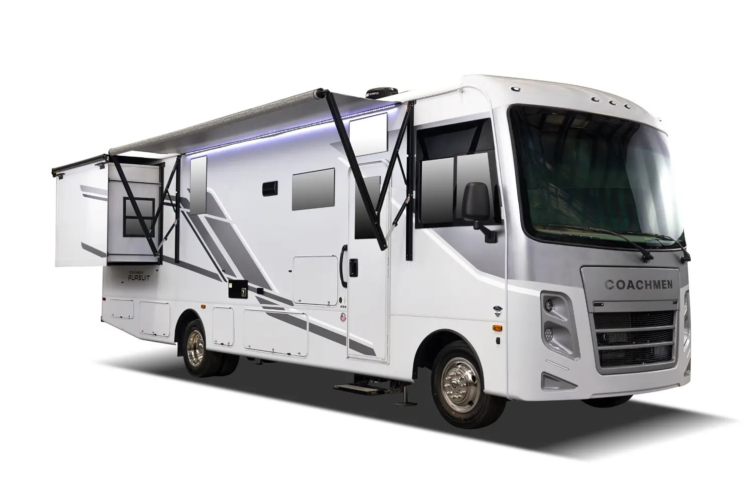 The Pursuit Class A Motorhome is crafted for travelers who seek adventure without sacrificing tranquility and elegance. With upgraded standard features and modern amenities, the Pursuit provides a refined interior that supports comfort, convenience, and style on every journey. Its spacious layout and premium finishes let you unwind after exploring mountains, lakes, or backroads, while smooth handling ensures confidence on every mile. The Pursuit transforms every trip into a luxurious outdoor experience, offering the perfect combination of performance and sophistication.