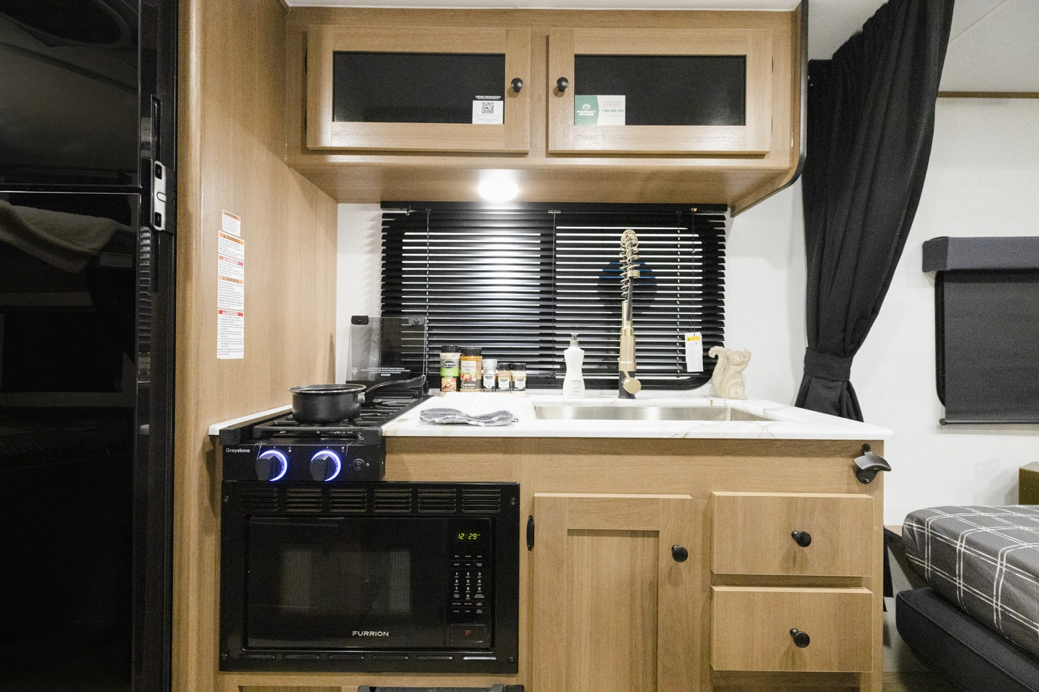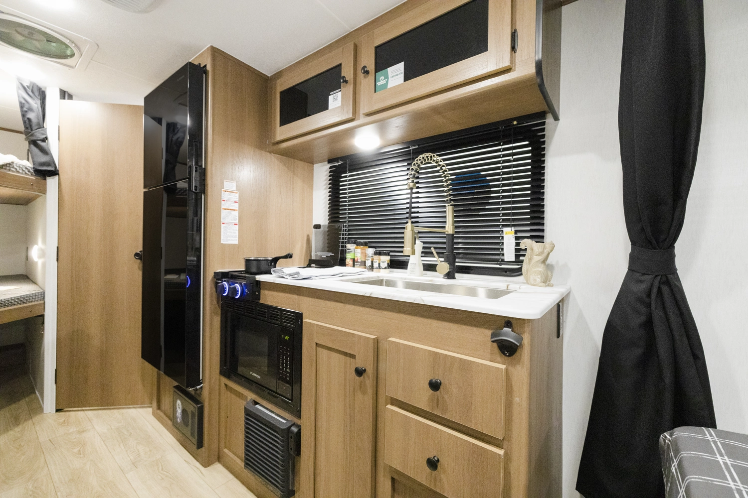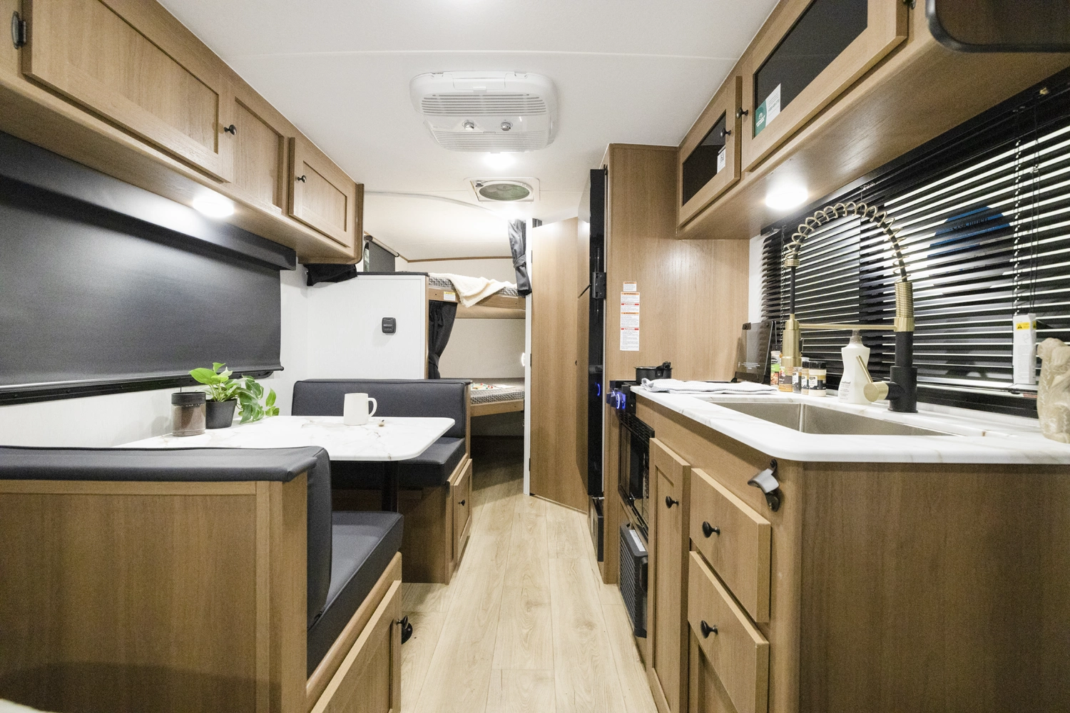 The Apex Nano 186BH blends bunkhouse versatility with off-grid readiness. Within its 22' 11" length lies a build made for stays off the beaten path, ideal for families that want backcountry access without giving up comfort.