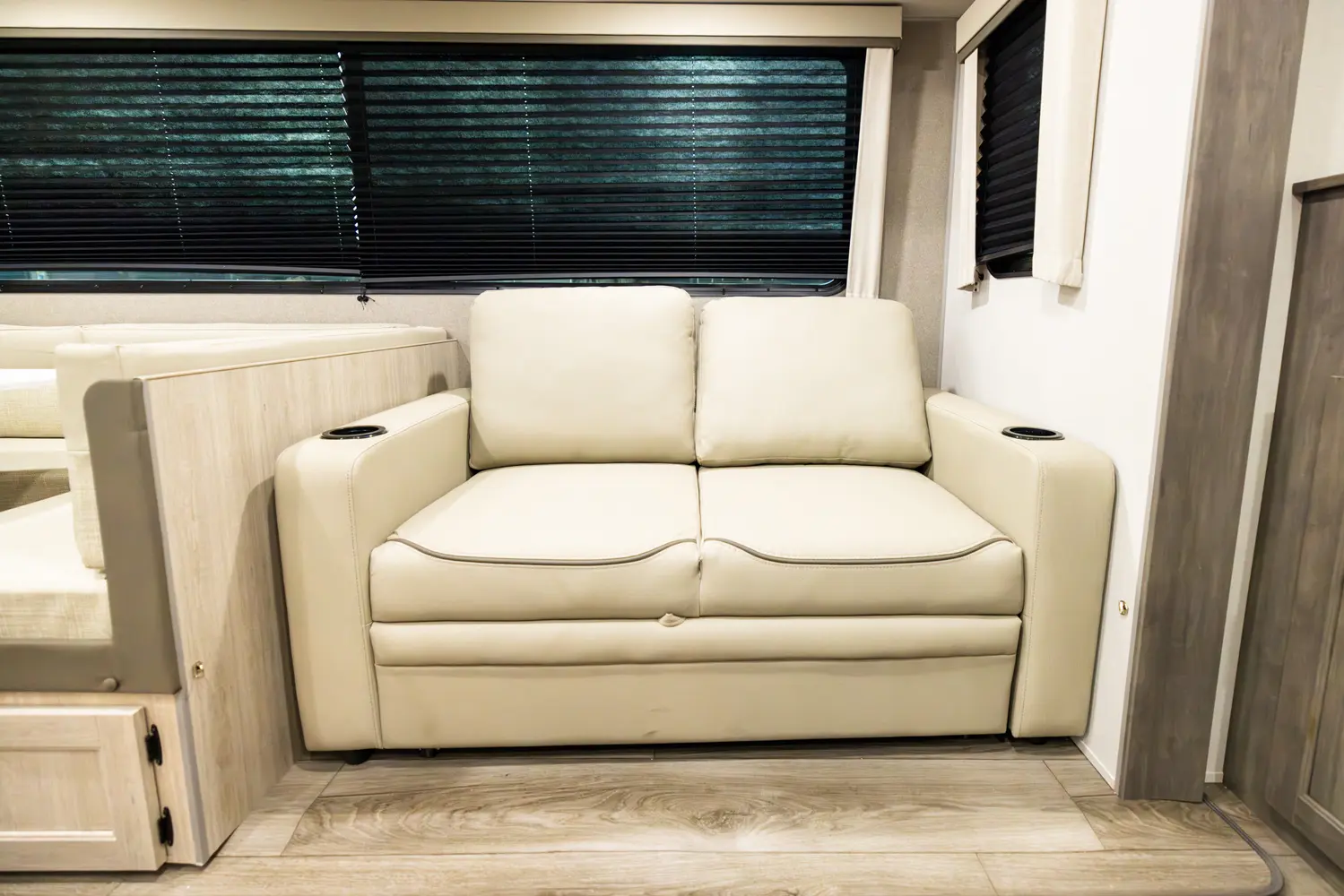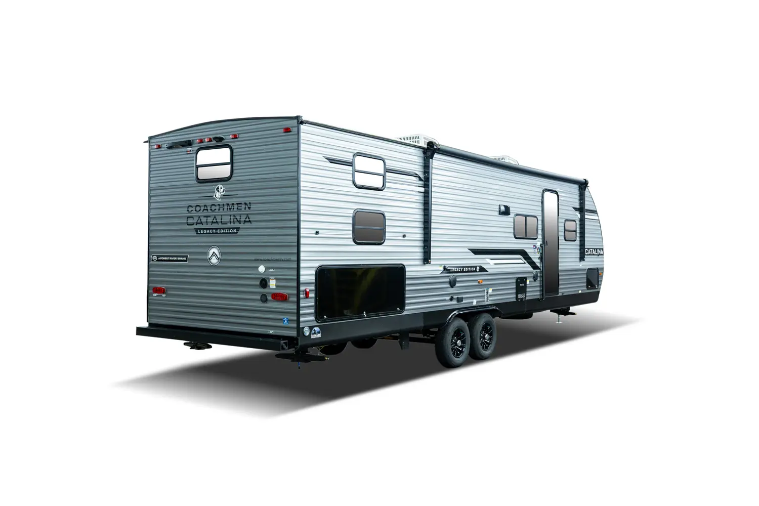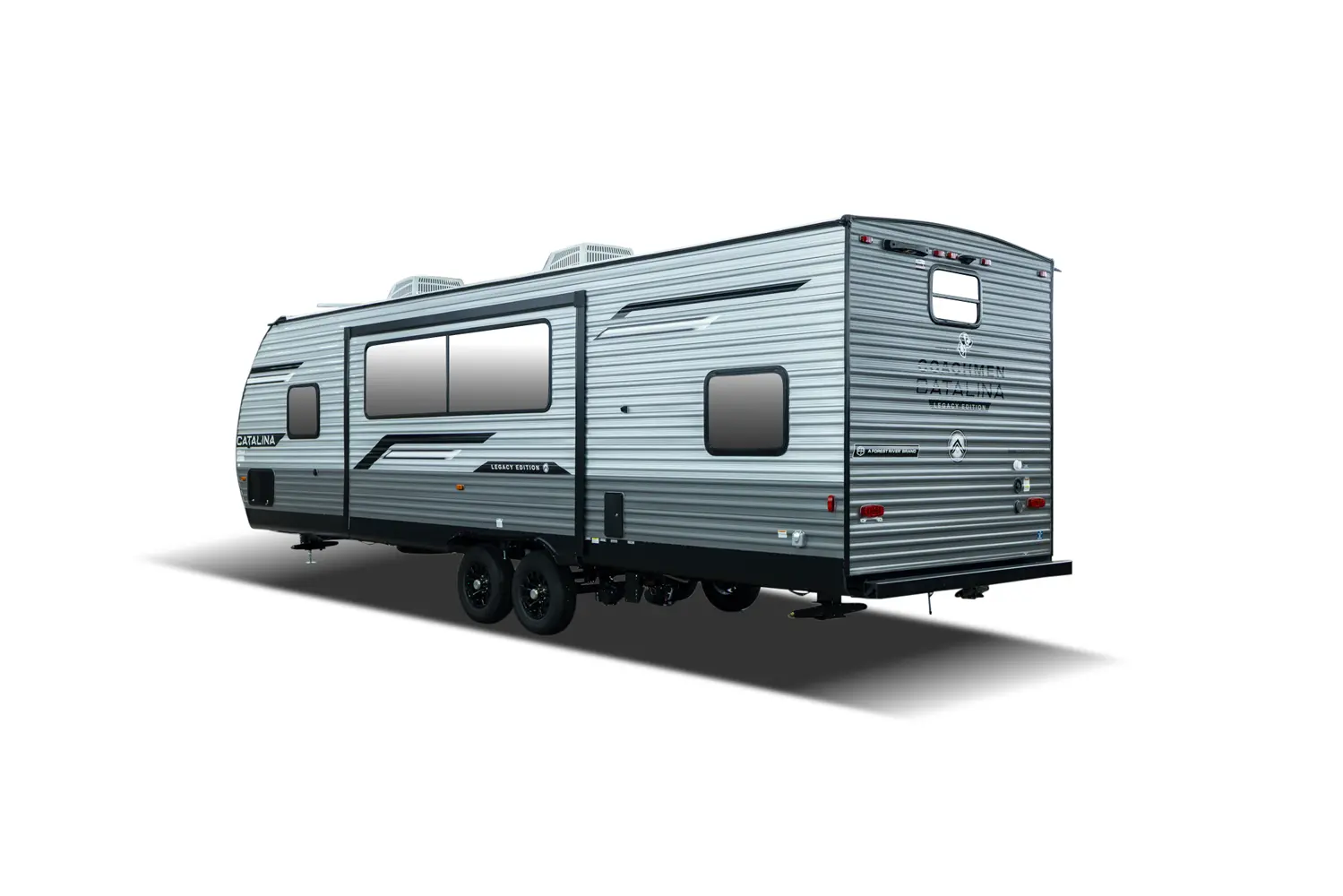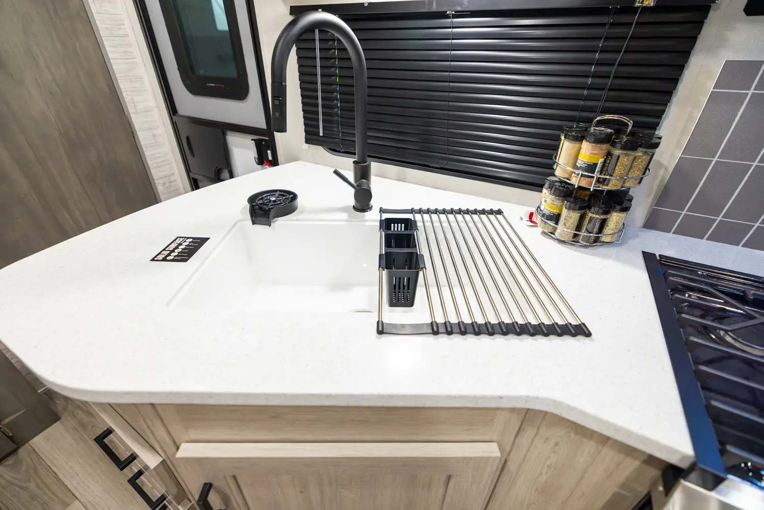 The 293QBCK is our unique take on the traditional quad bunk floorplan. The extra-large U-shape dinette offers plenty of seating while the bunk room easily sleeps 5+ and is designed for the maximum amount of comfort and convenience. The bunk room comes with its own wardrobe, dresser, and a solid slider door for privacy. No bunk house is complete without the addition of our standard outside camp kitchen with mini refrigerator, pull-out griddle cooktop, storage cabinet and sprayer hose!