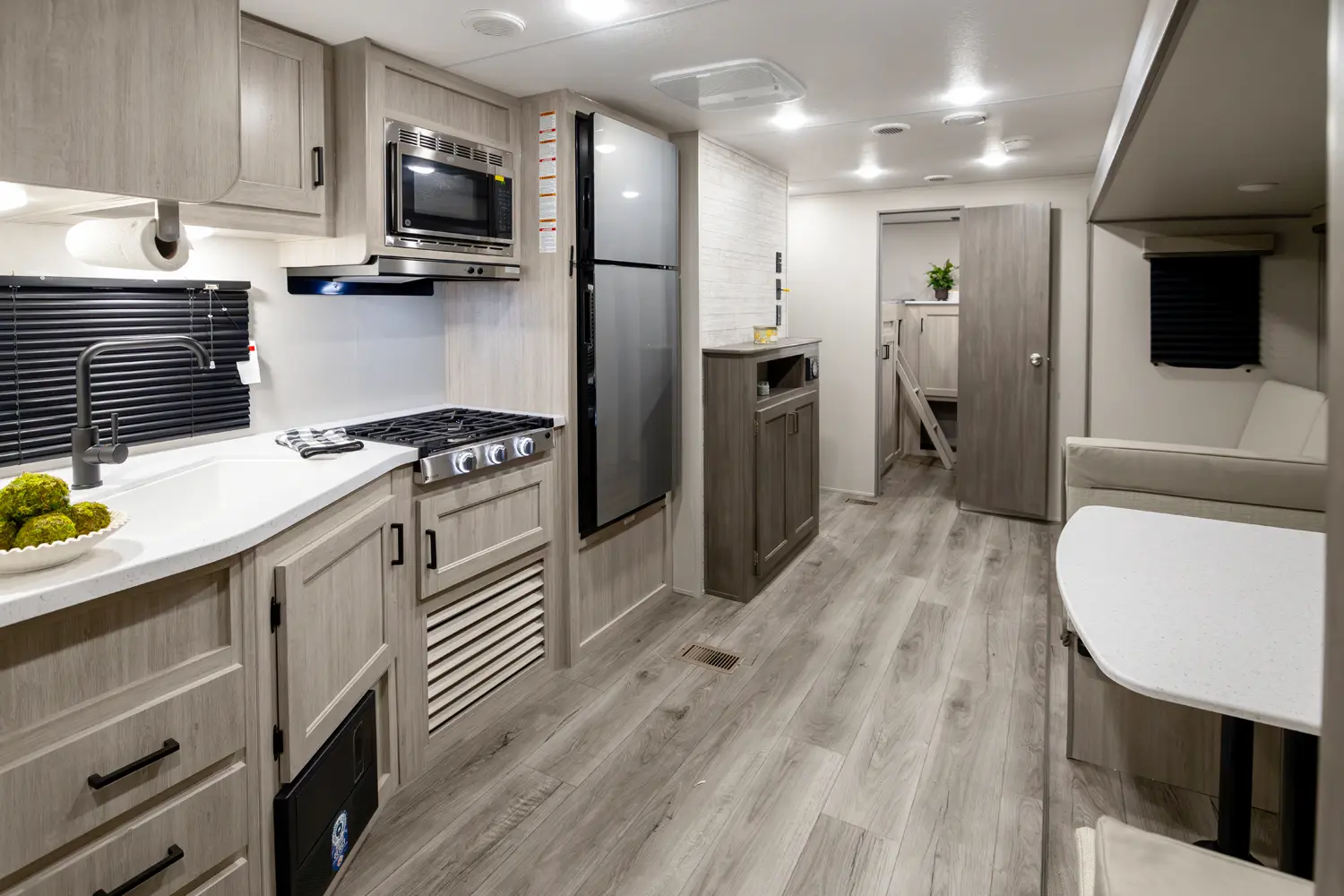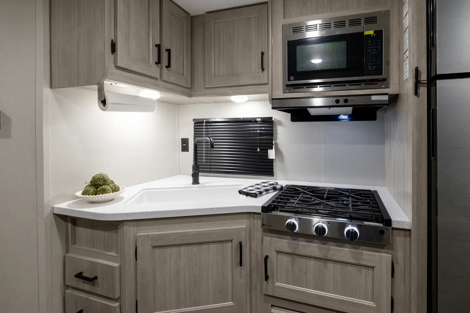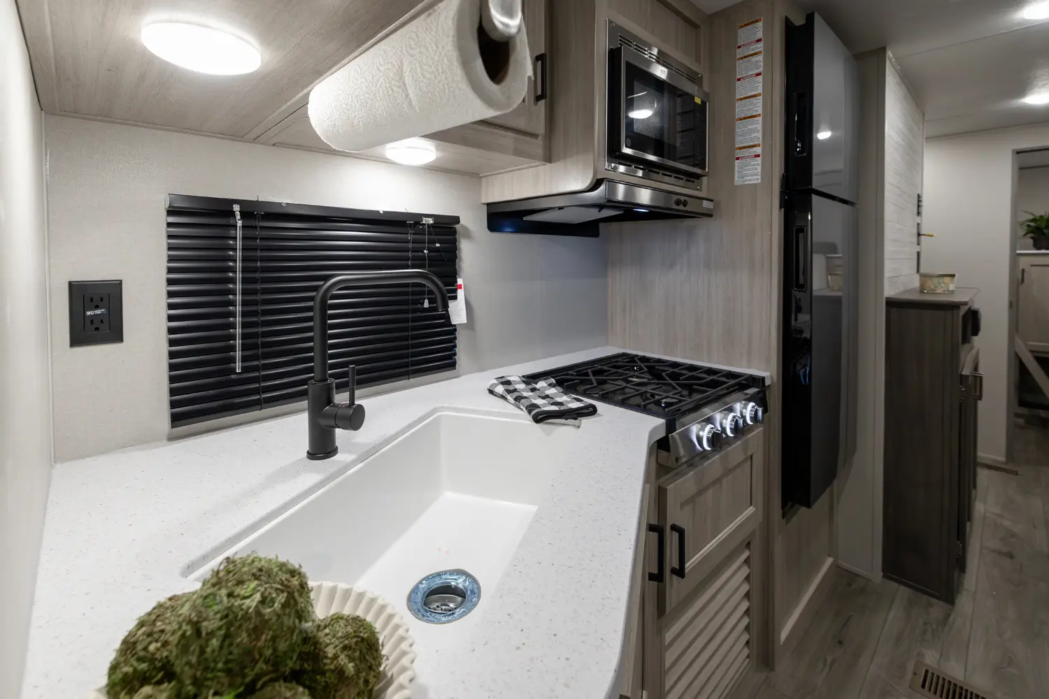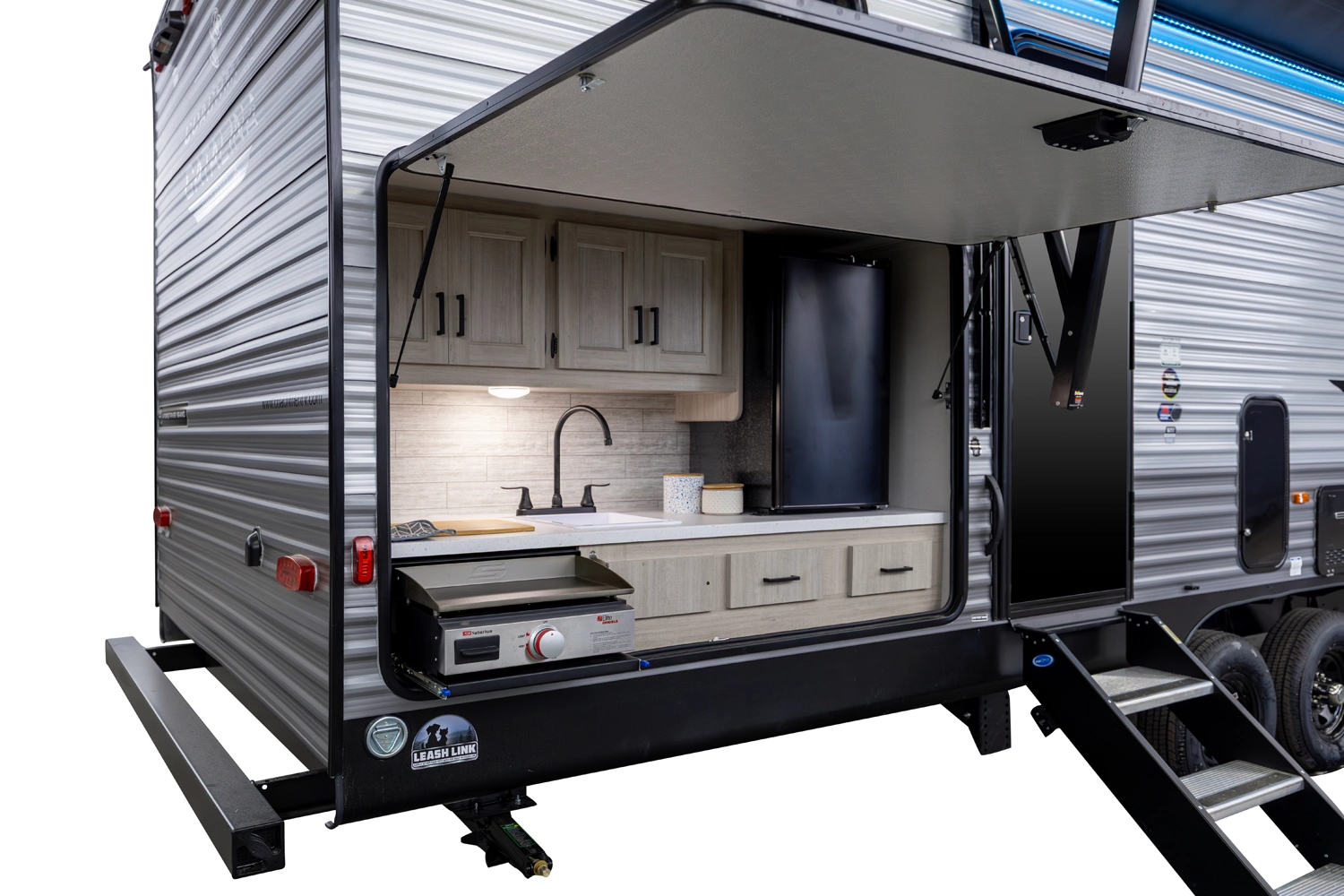 • Full Size Exterior Camp Kitchen w/Sink (Adds 30 Gallons of Gray Water Capacity) (281QBUNK)