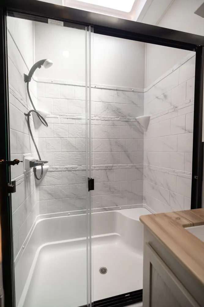 • Upgraded Matte Black Main Shower Frame, Sprayer, & Lav Hardware