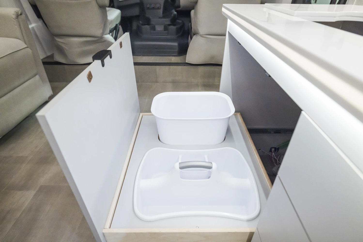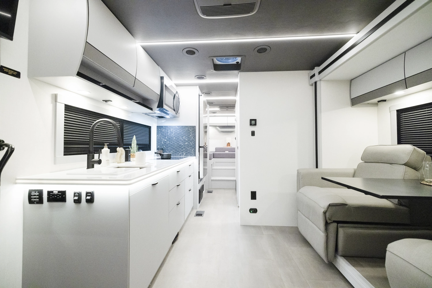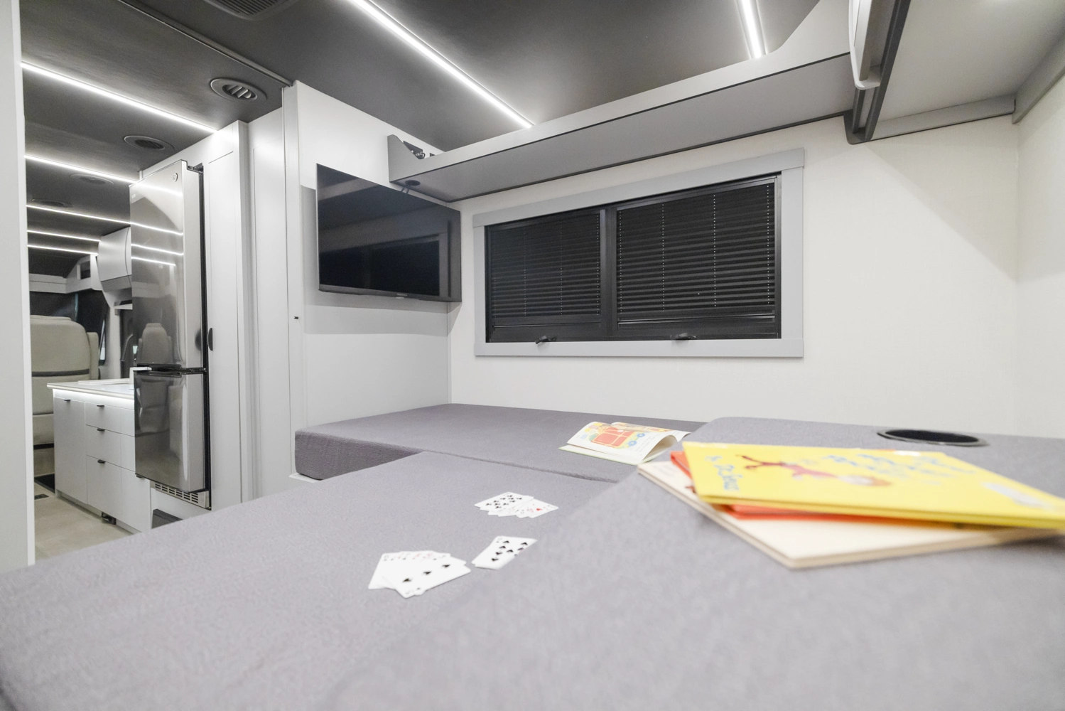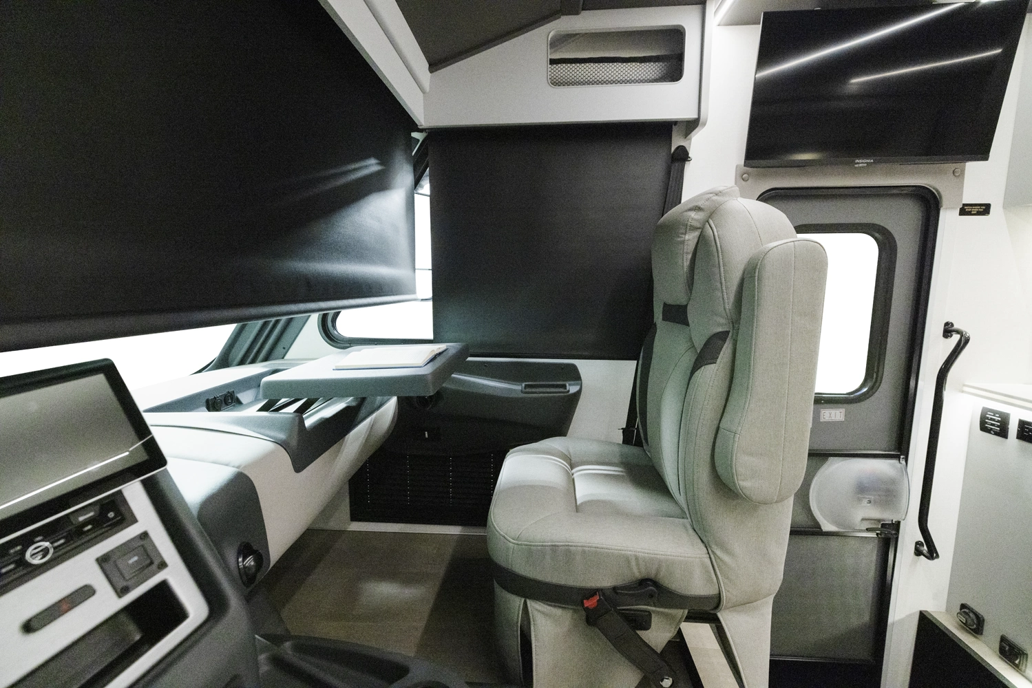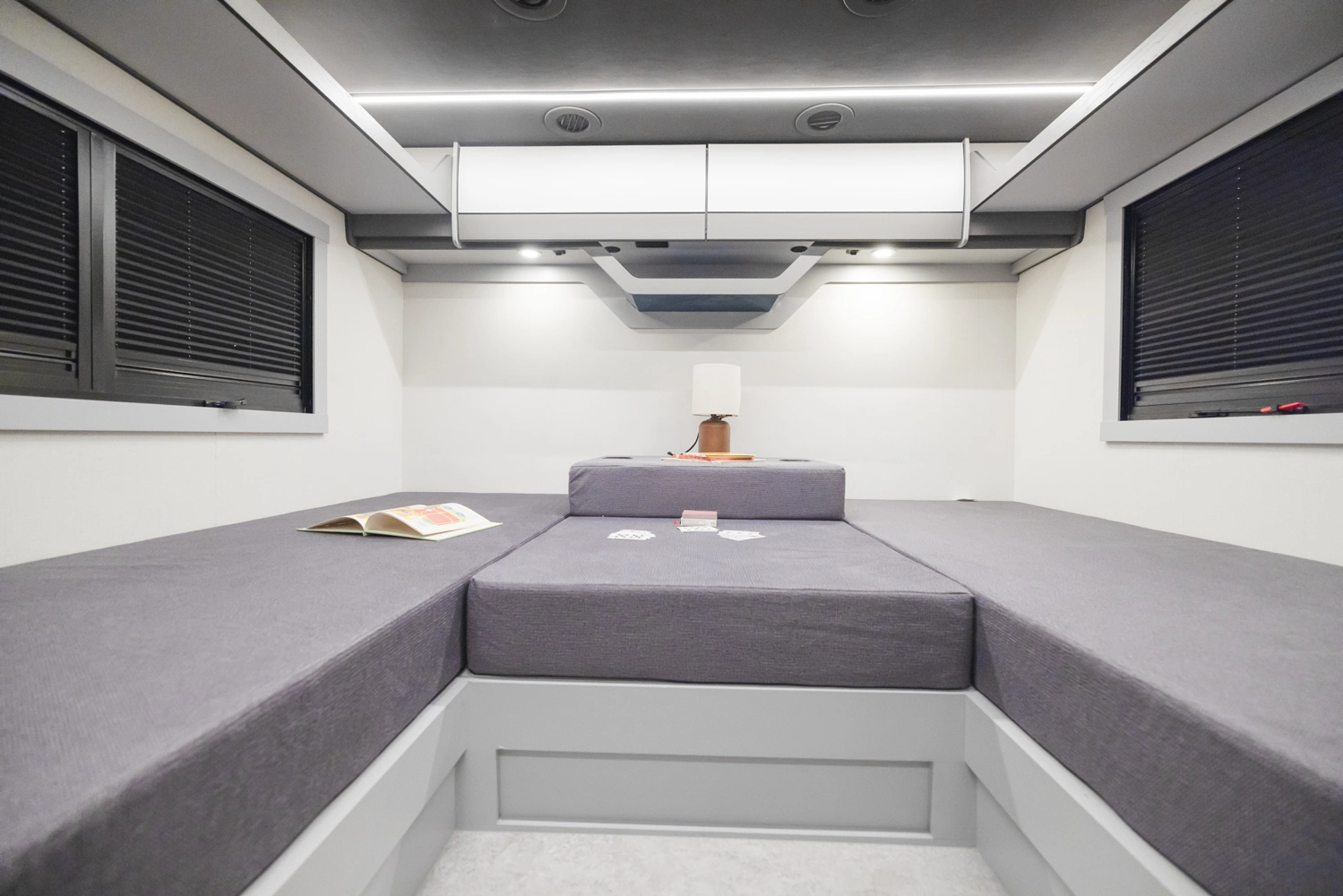 The Euro 25TB offers flexible sleeping and lounging in a compact Class A package. Built on a Ford F-53 chassis, its gas-powered engine combines fuel economy with reliable touring power. With integrated shading on large square windows, premium insulation, and on-demand hot water, it supports spontaneous weekend getaways and longer outdoor journeys alike.