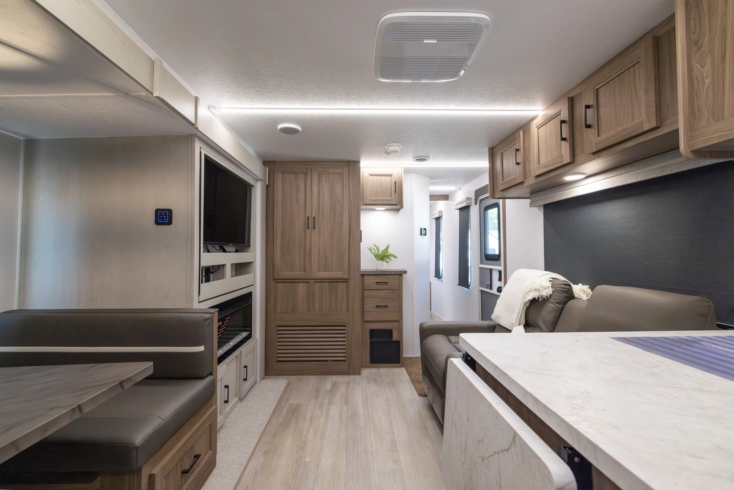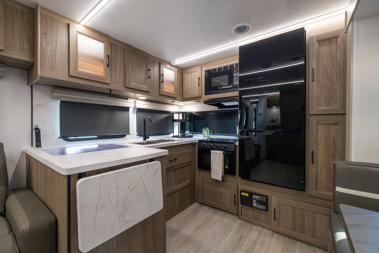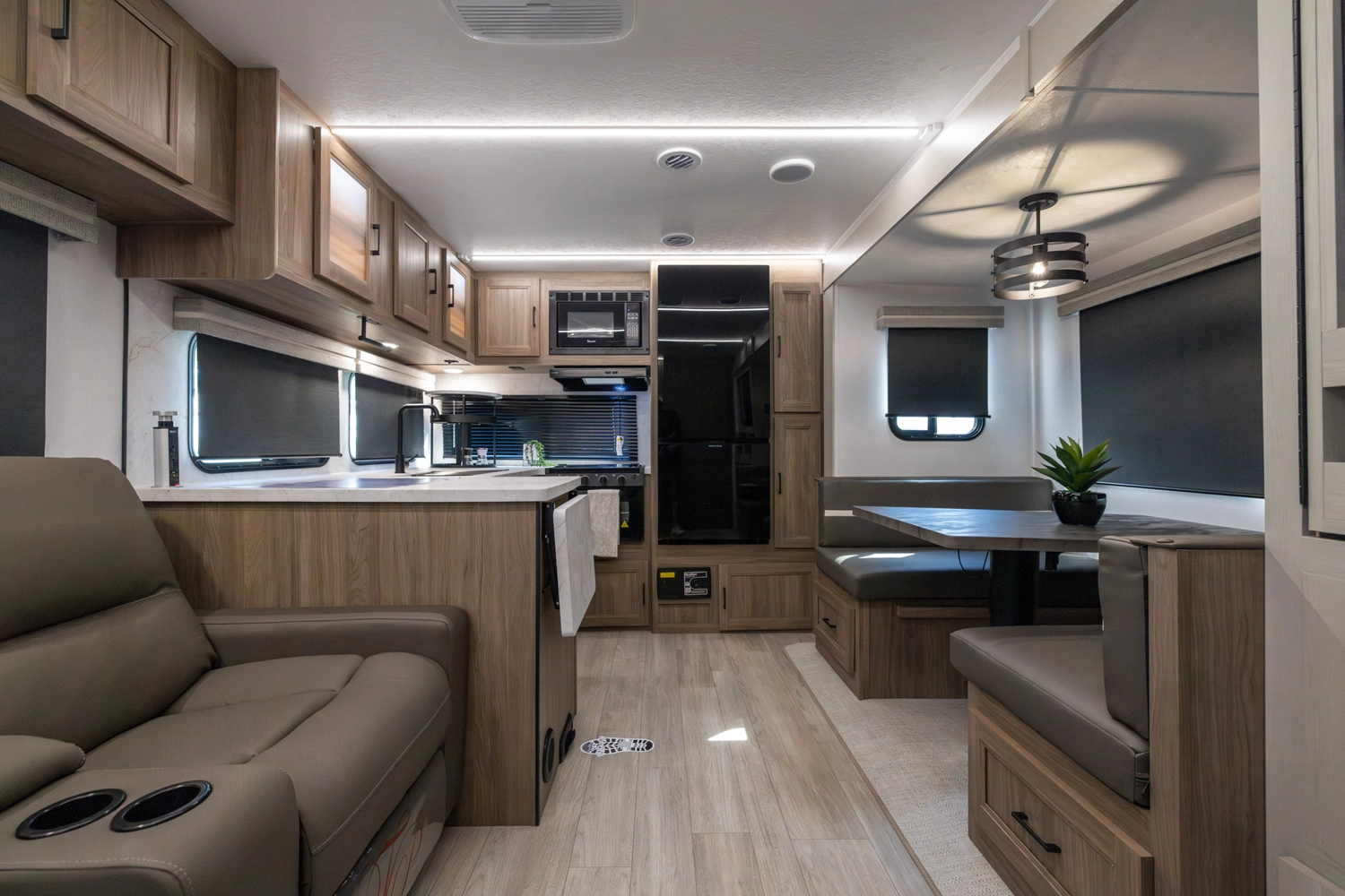 With a rear kitchen and slideout, the 274RKS offers a spacious and functional layout for long weekends or seasonal campouts. Its build quality, molded storage, and solar readiness let you set up camp deeper into nature, then cook and unwind in style.