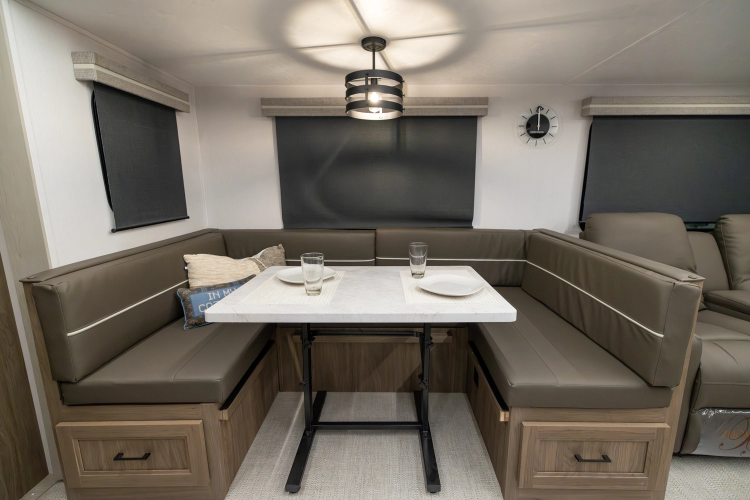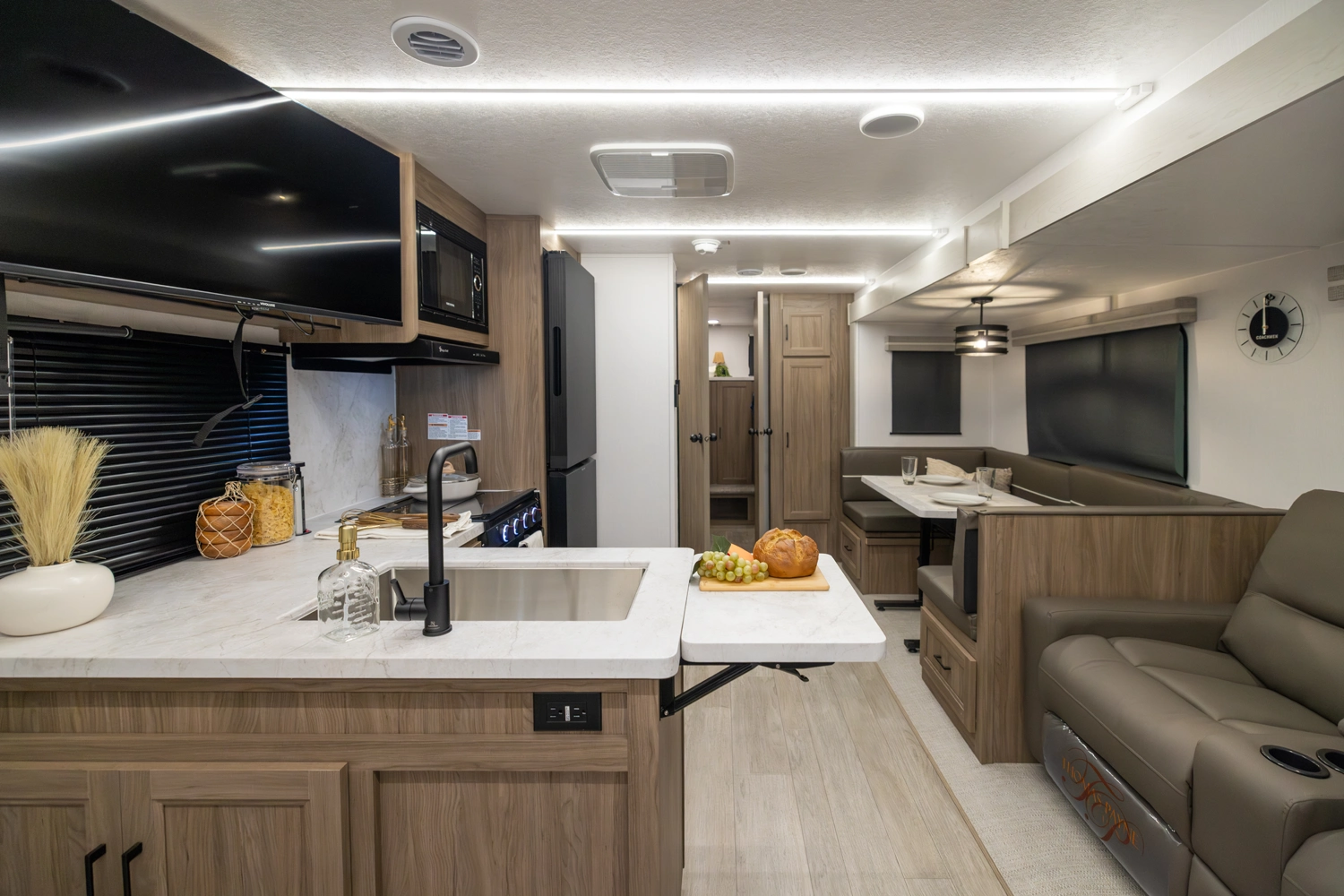 This model brings a roomy 33' layout, bunk beds, dual slides, and versatile living areas for active families. With rugged frame design and systems that support off-grid use, the 292BHDS is built to take you from the trailhead to the lake—and back again in comfort.