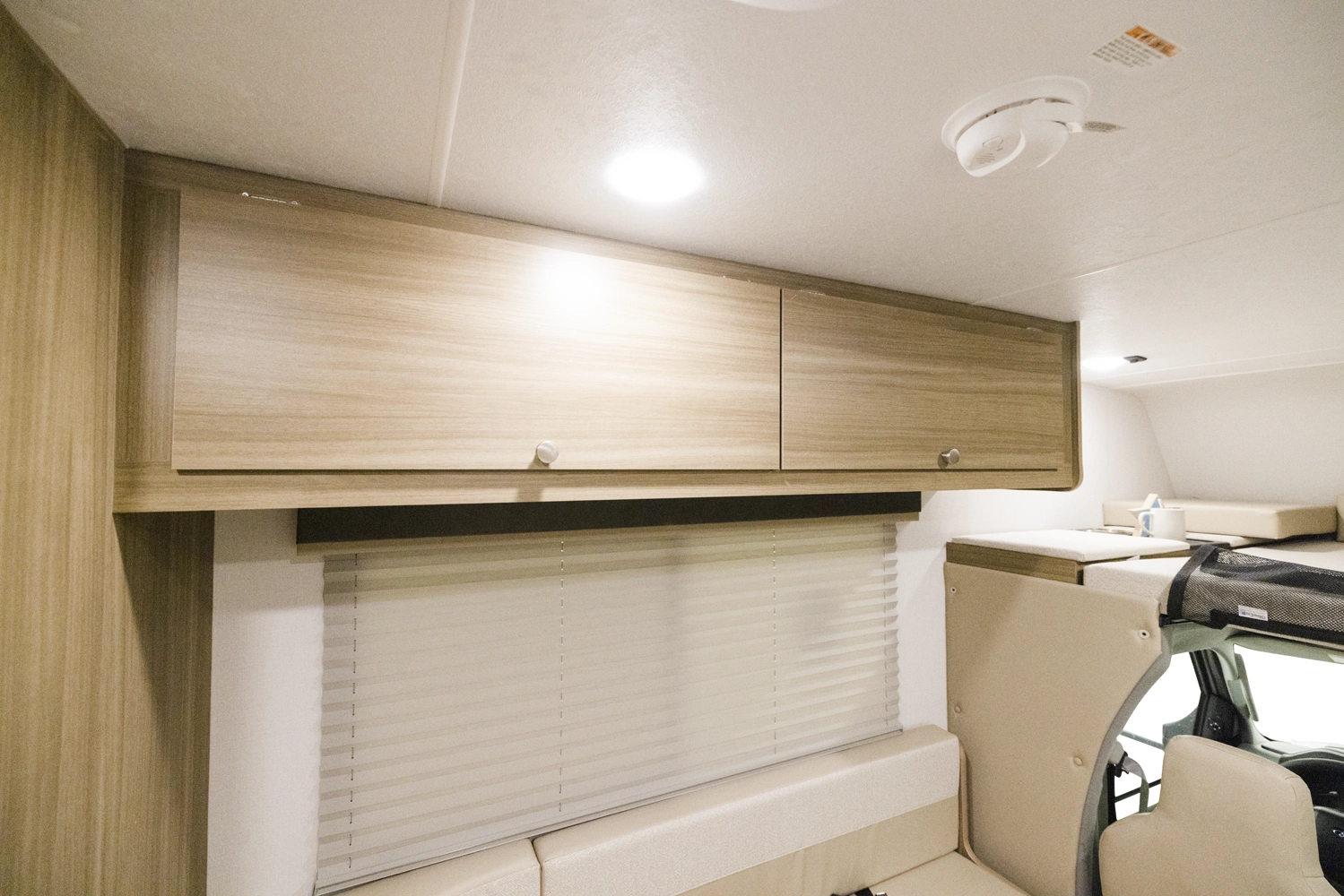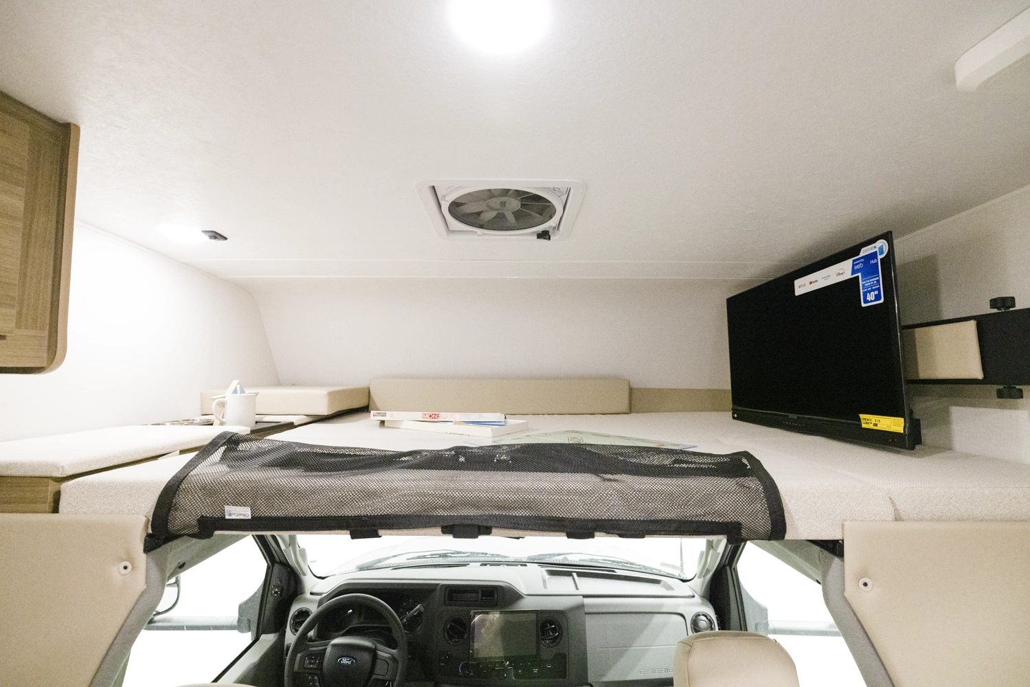 • Large Cab Over Bunk - 57" X 95" with Storage, Cup Holders and USB ports