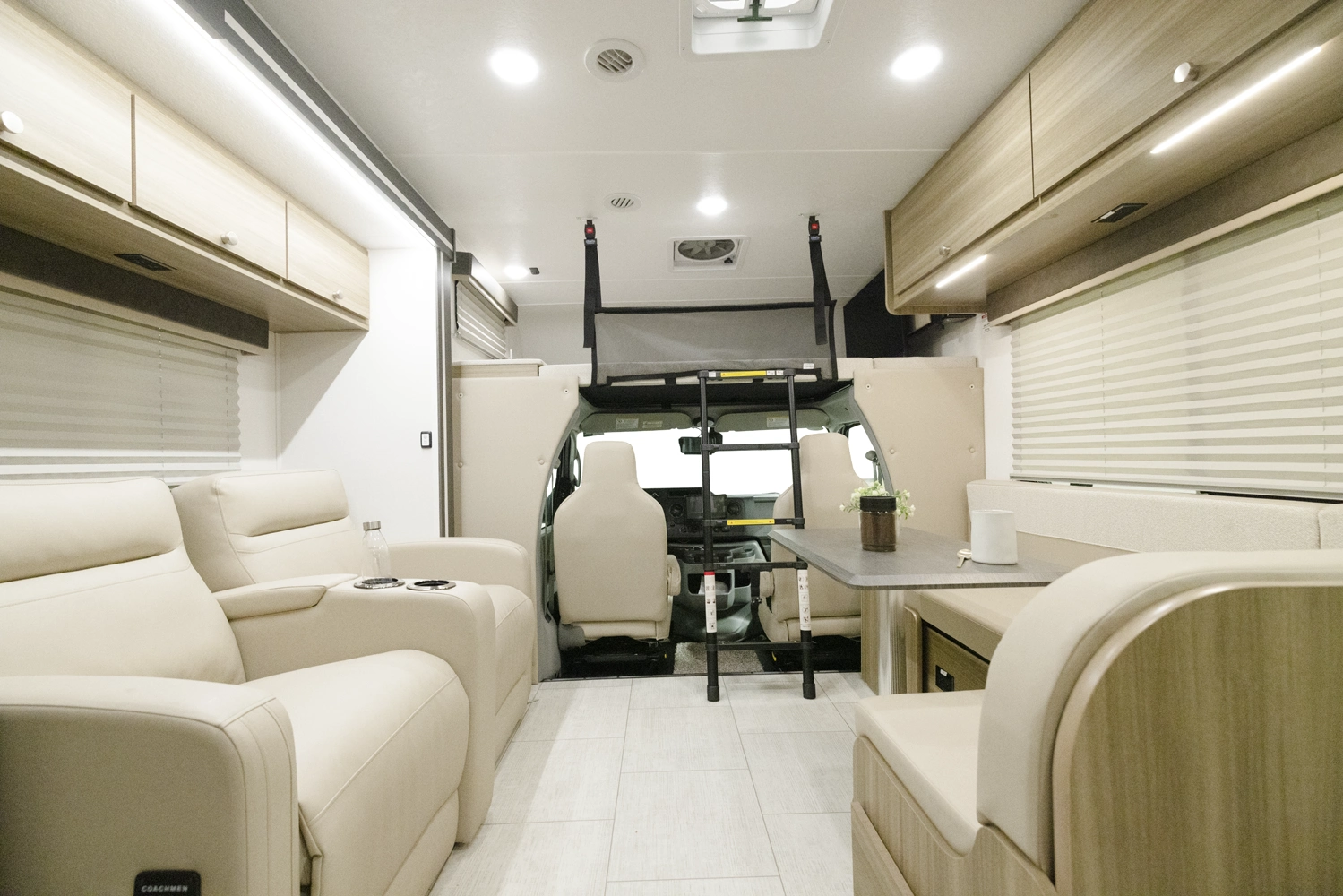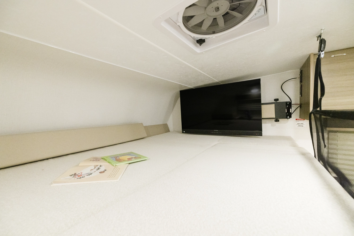• Large Cab Over Bunk - 57" X 95" with Storage, Cup Holders and USB ports