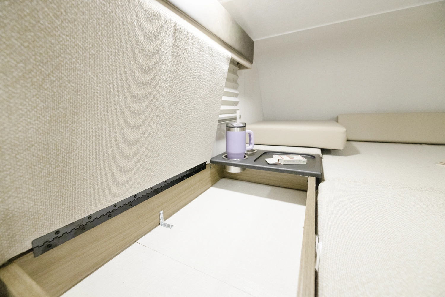 • Large 57 x 80" Cab-Over Sleeping Area with Cup Holders & Storage (800 lb. Capacity)