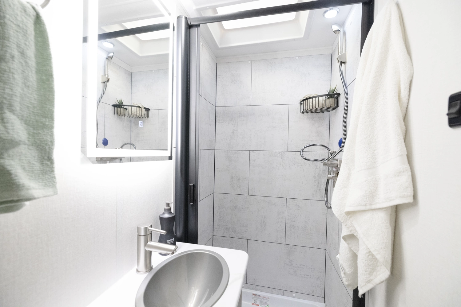 • Dual A/C - 15,000 BTU Ducted Front with Heat Pump & 11,000 BTU Non-Ducted Rear (N/A 22XG, 23FS, 27QB)