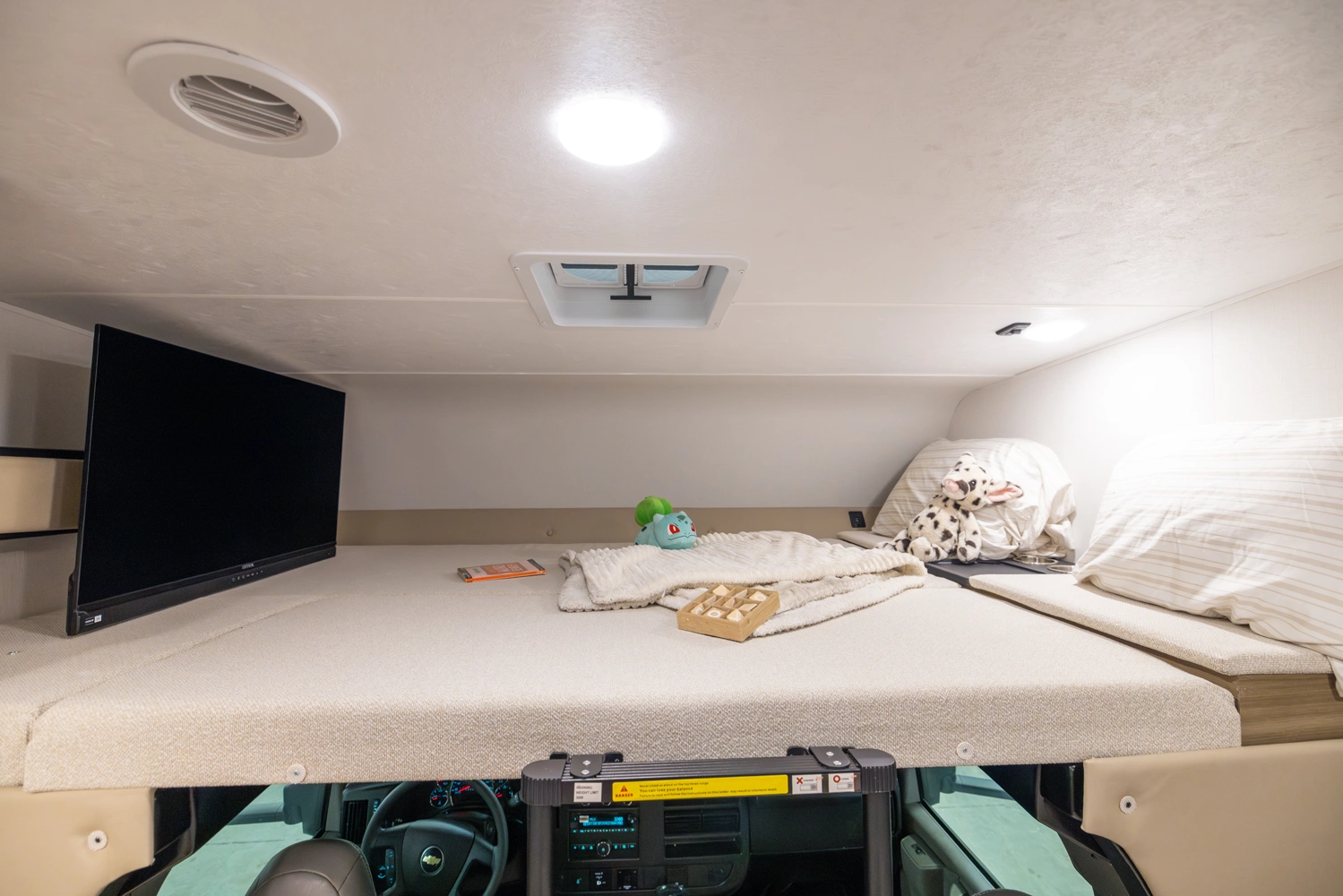 • Large Cab Over Bunk - 57" X 95" with Storage, Cup Holders and USB ports