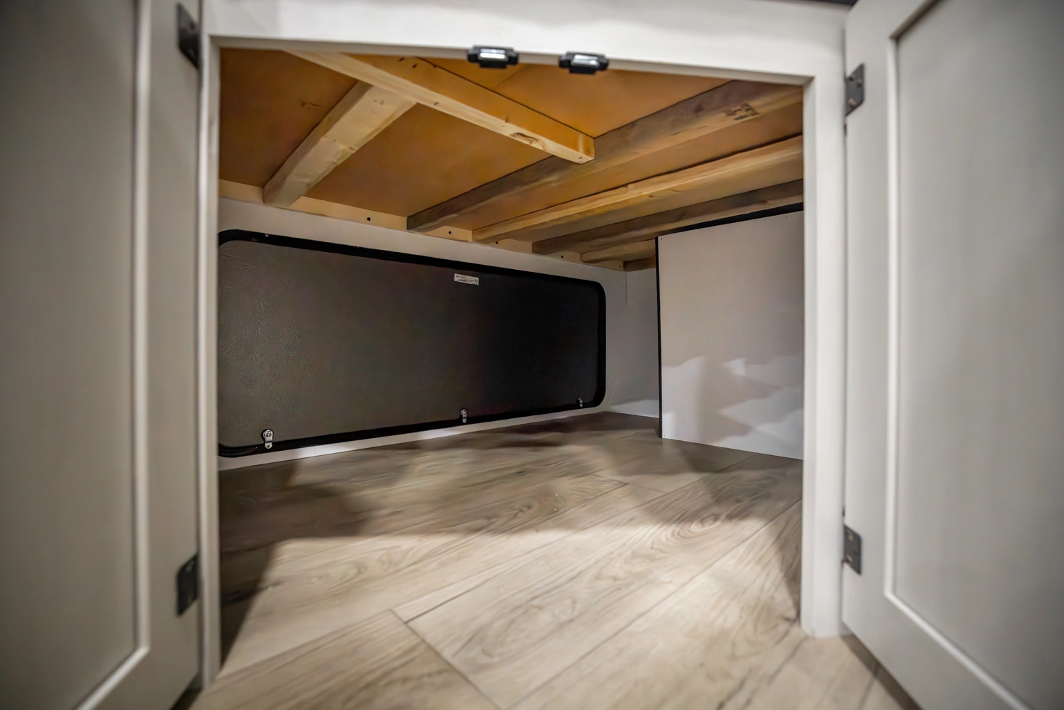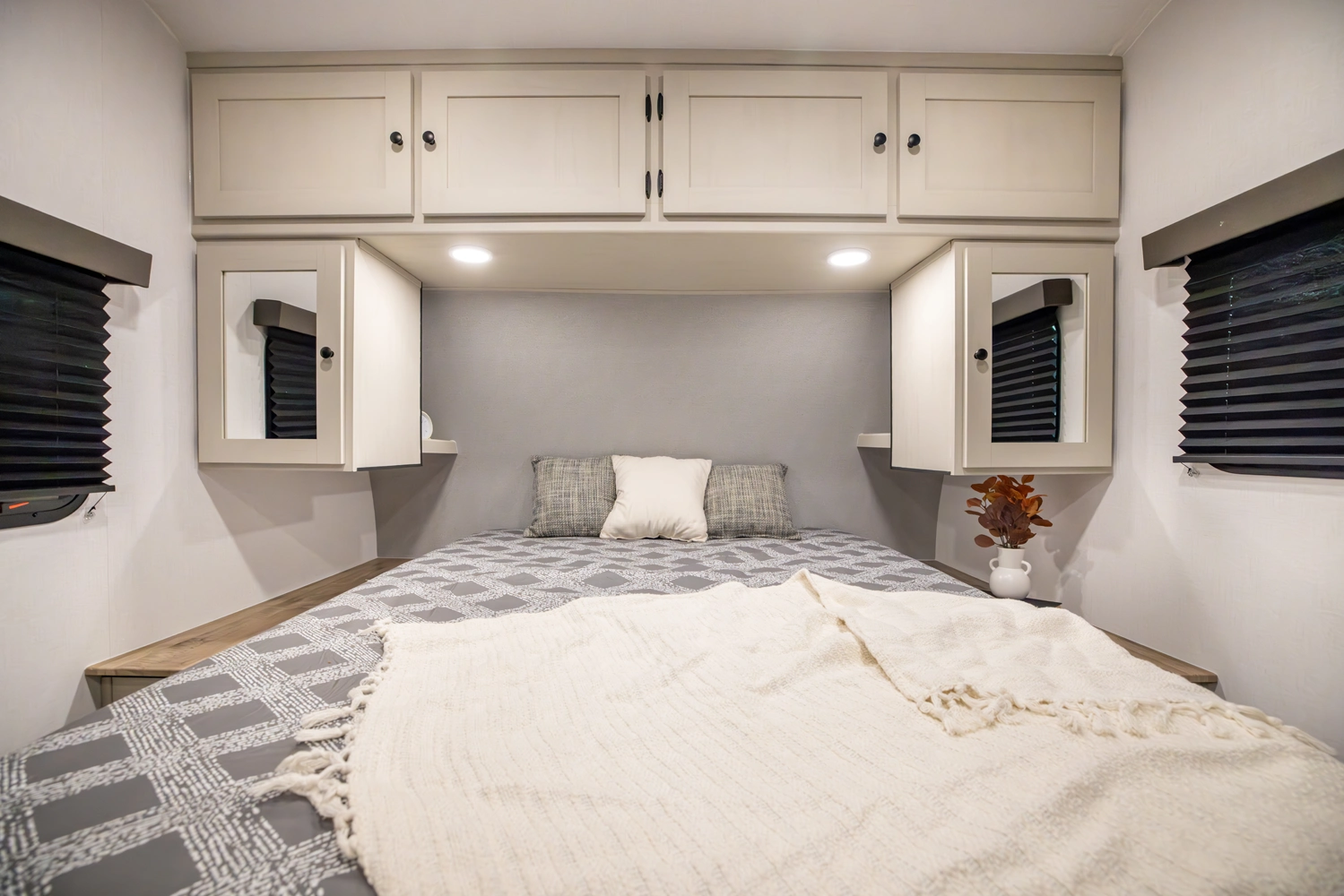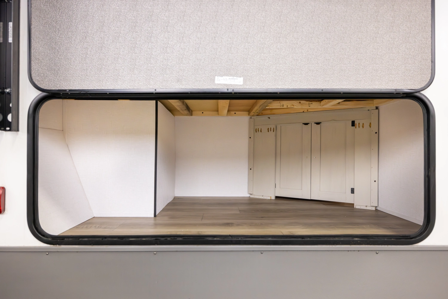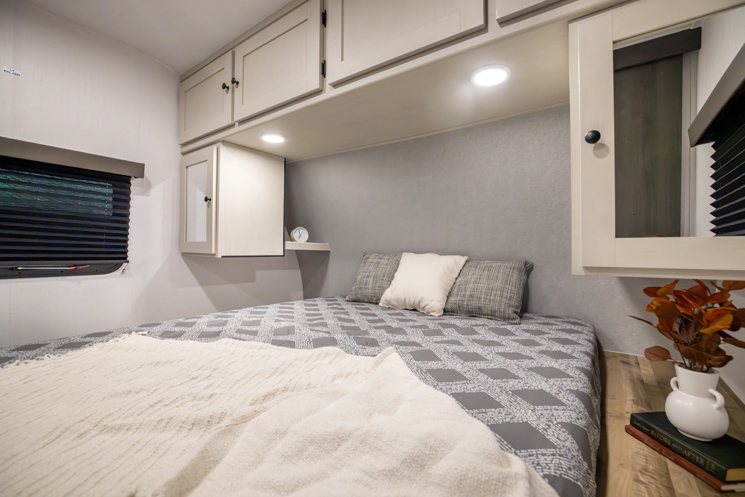 This family-friendly coach features a double-over-double bunk design with inside and outside storage under the bottom bunk. A super slide opens the living area to a booth dinette and a sofa with theater seating options, and a large pantry with washer/dryer prep keeps everything neatly stored, creating a comfortable and functional space for the whole family.