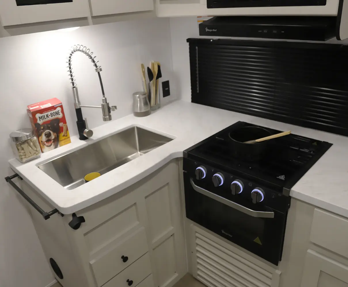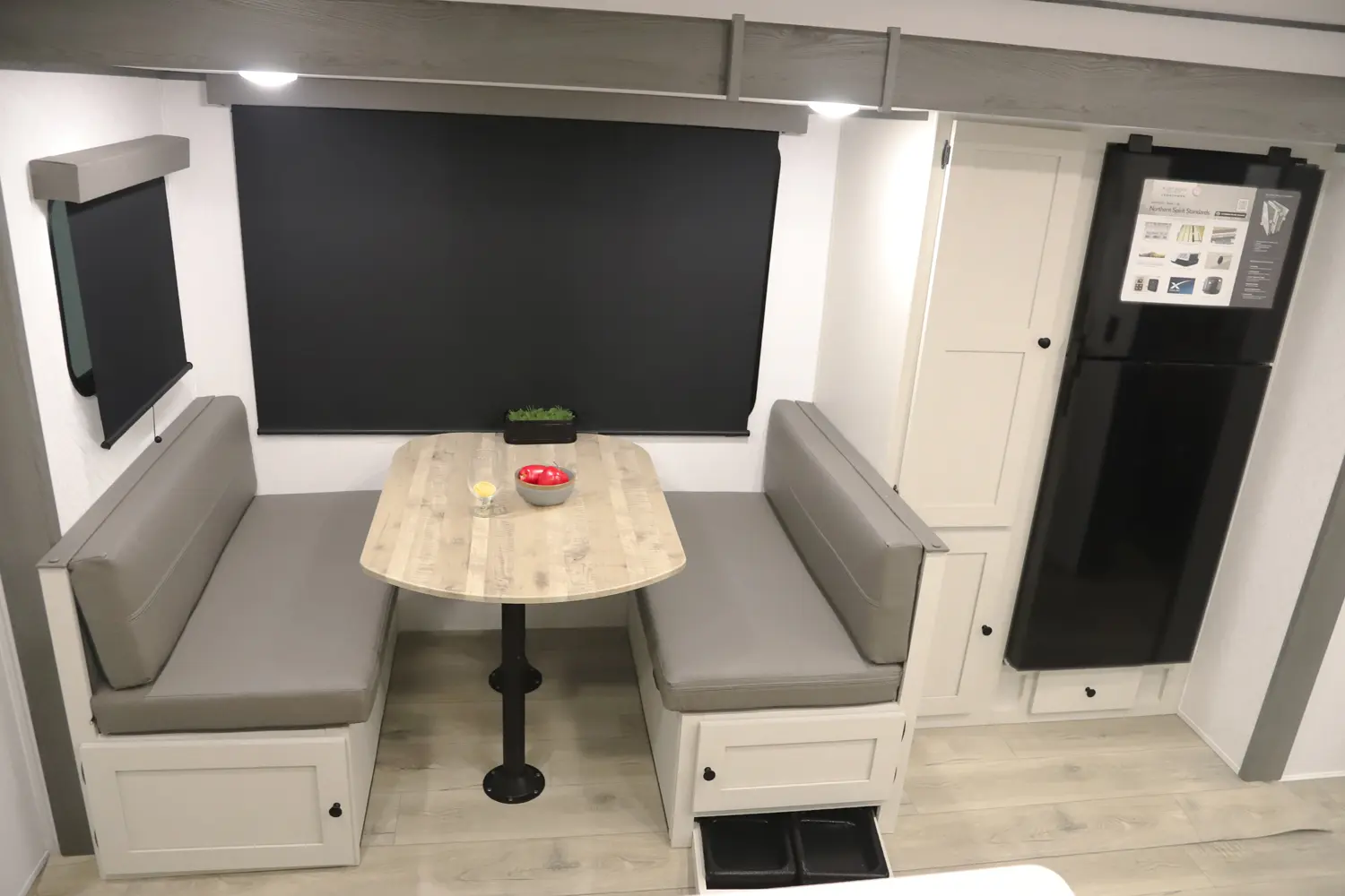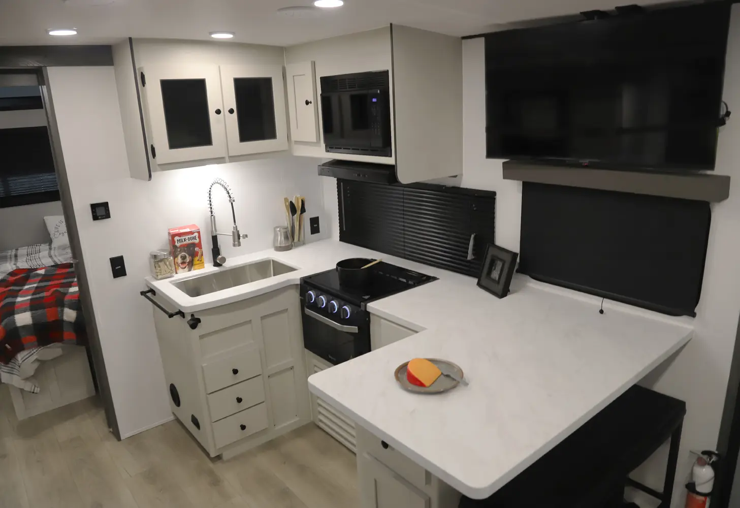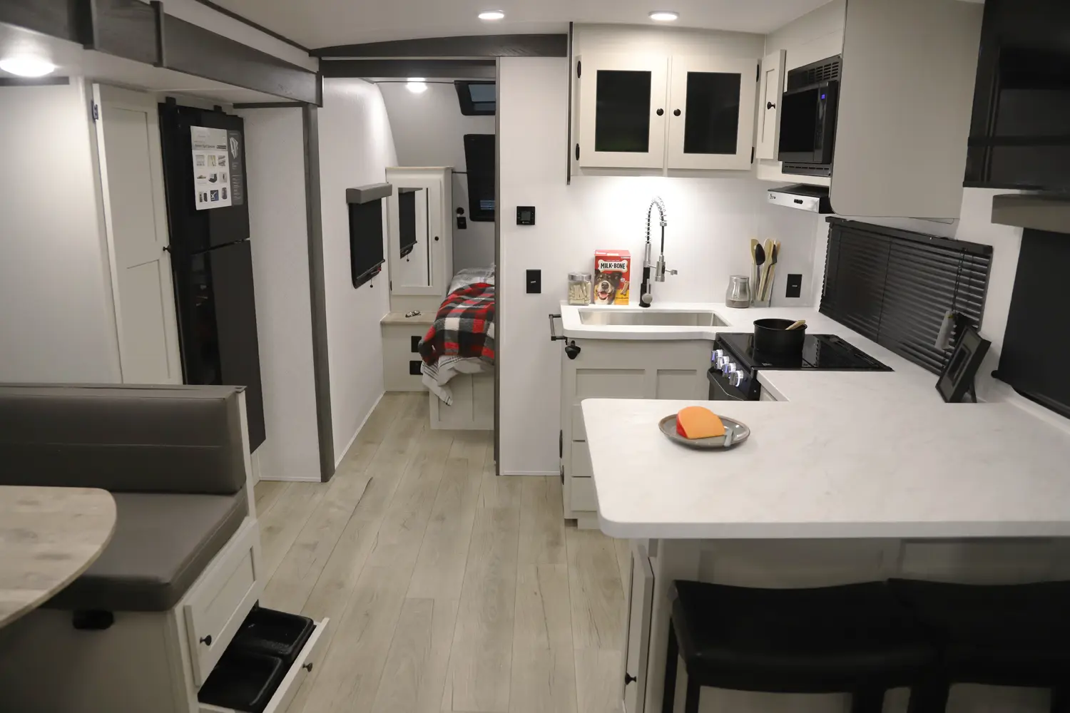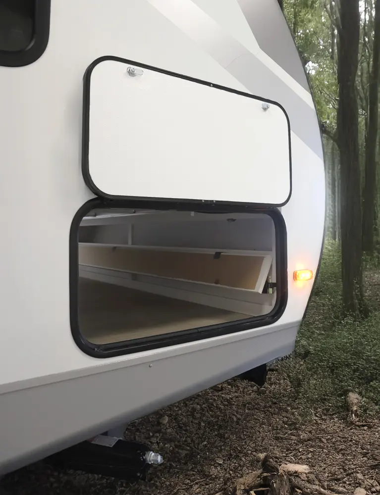 At 29 ft, this travel trailer offers double-over-double rear bunks with a Store-More cargo center under the bottom bunk for easy loading. A dinette slideout opens up the living area, and the bartop with chairs provides a practical space for meals or extra prep. Up front, a private bedroom offers a quiet retreat, making the 2457 a convenient and family-friendly choice for your next trip.