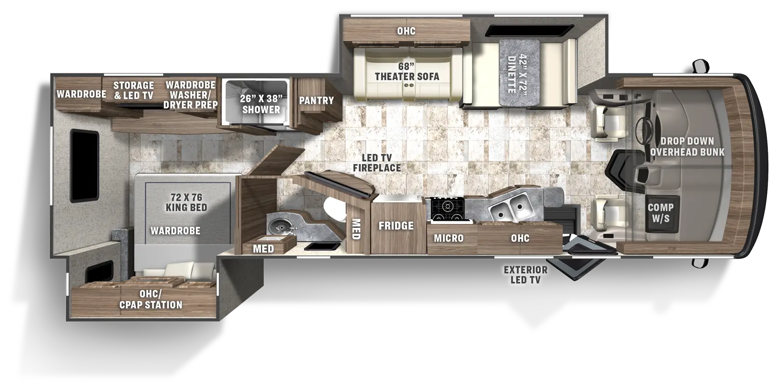 The Pursuit 31TS provides a theater-style interior with premium seating and a slide-out, giving you a relaxing retreat for after a day of exploring nature. With strong power, refined features, and optimized space, this floorplan turns every campsite into a comfortable base for road-tripping across parks, forests, or coastlines.