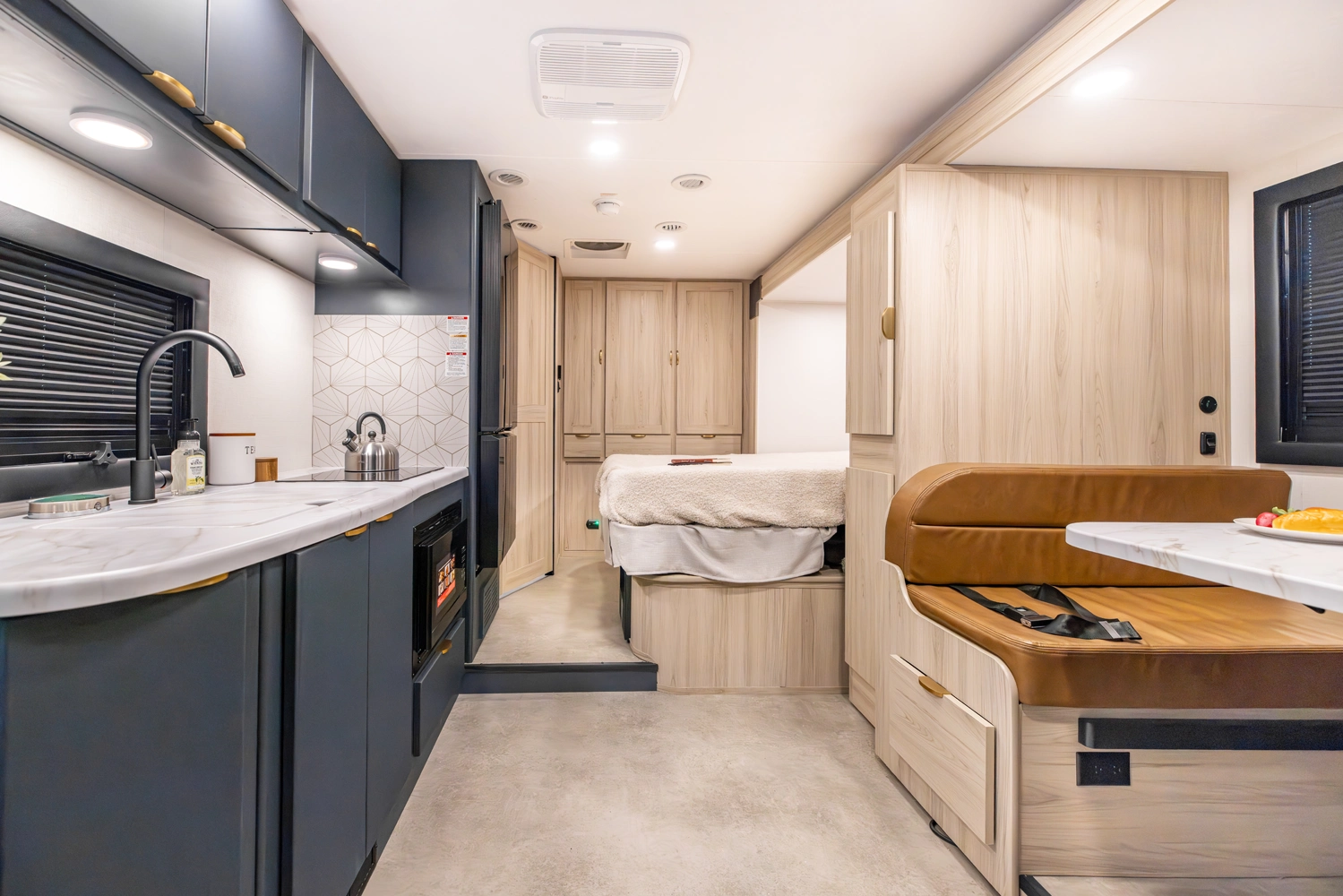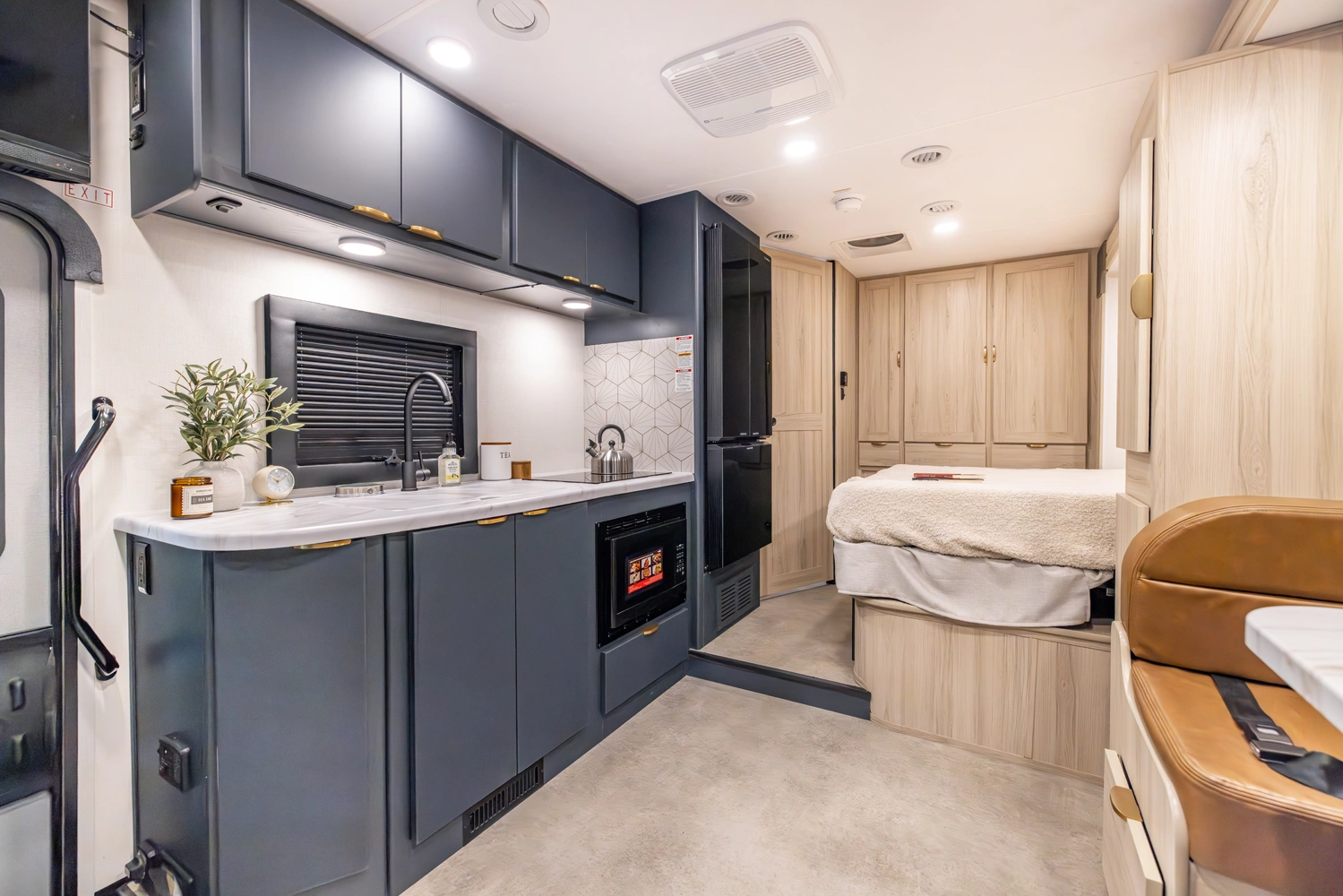 • Two Tone Interior Cabinetry: Indigo Bay (Indigo Blue / Sand Dune) or Highland (Duna Green / Mary Maple)