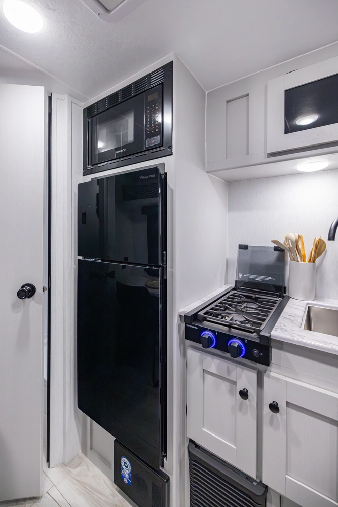 A rugged, compact Remote trailer built for minimalist adventure. Lightweight and tough, it is easy to tow and maneuver into remote campsites. With features like solar prep and heated tank pads, it is ready for weekend getaways and off-grid excursions so you can spend more time exploring and less time on setup.