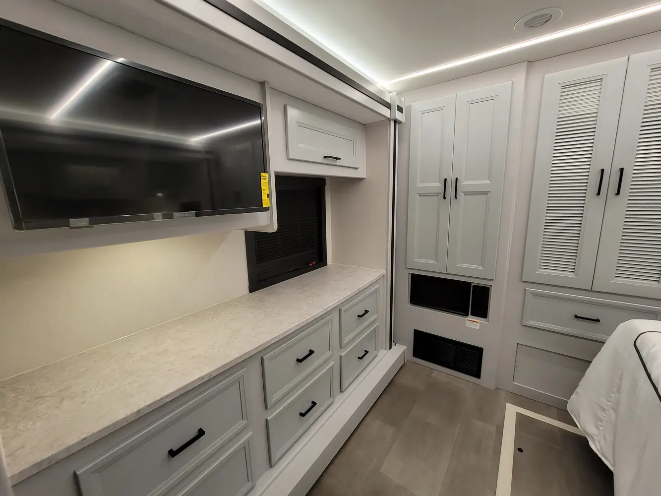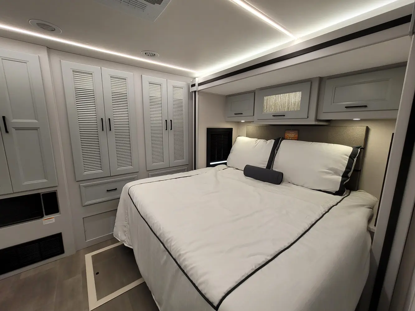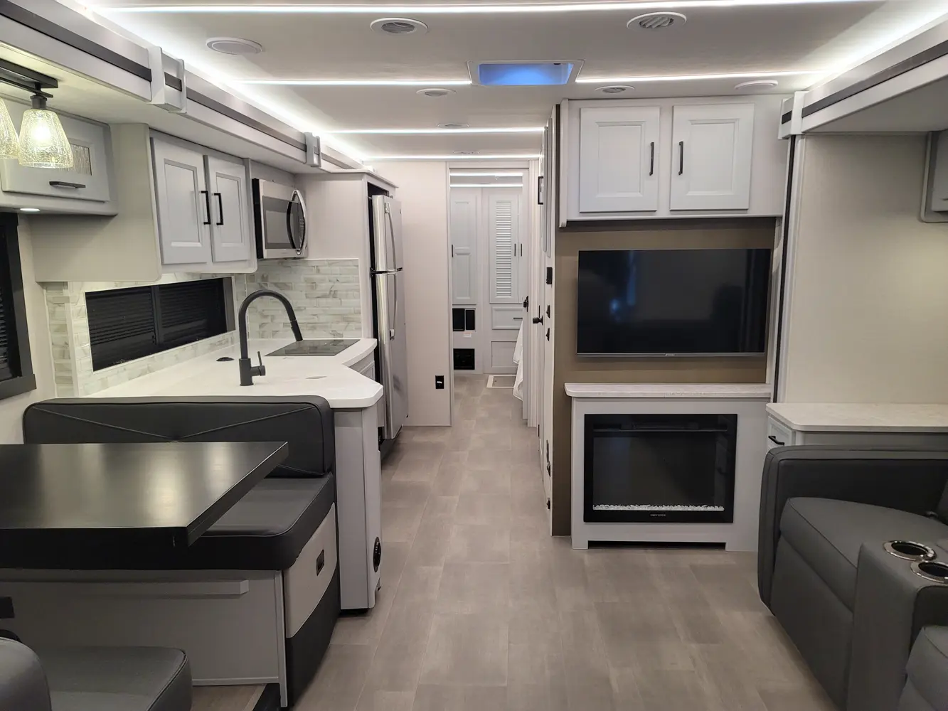 The 354QS Diesel offers a four-slide layout for maximum living and storage space on long road trips. Its diesel power and air-ride suspension provide effortless performance on highways and backroads. Premium interior finishes, a king bed, and versatile seating make it perfect for outdoor adventures while keeping comfort and style a priority.