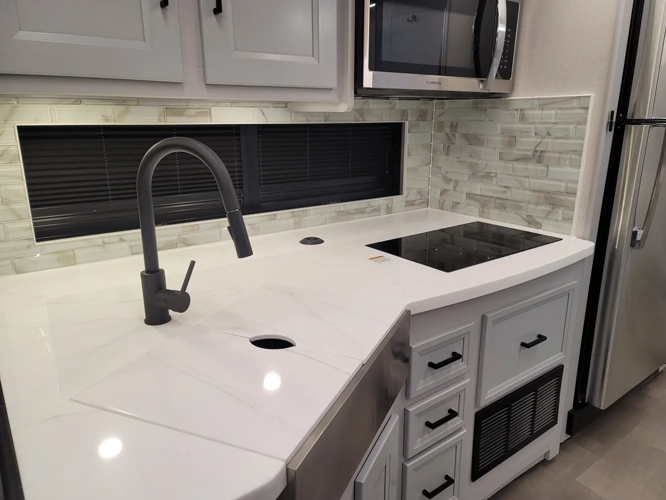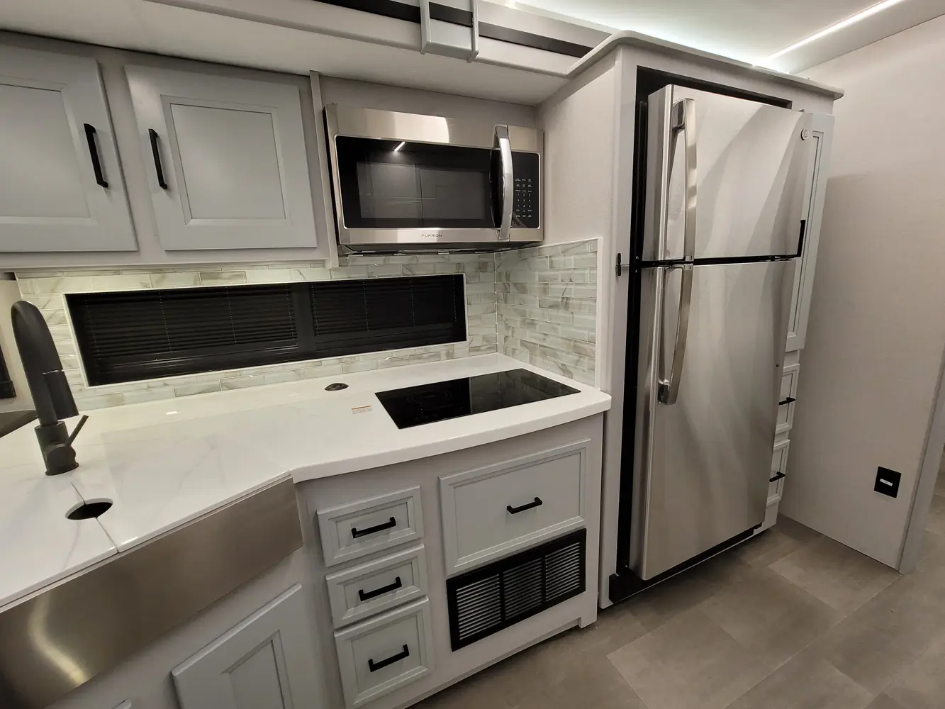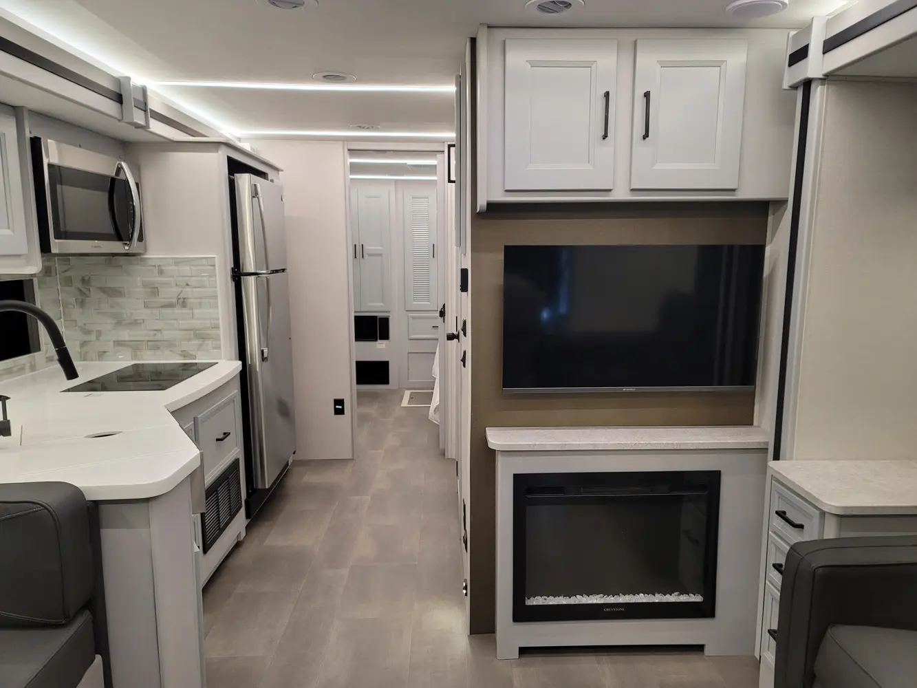 The 354QS Diesel offers a four-slide layout for maximum living and storage space on long road trips. Its diesel power and air-ride suspension provide effortless performance on highways and backroads. Premium interior finishes, a king bed, and versatile seating make it perfect for outdoor adventures while keeping comfort and style a priority.